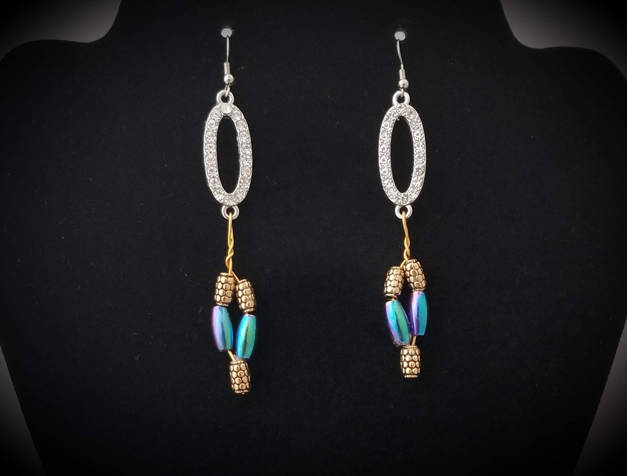 Item #806587-3.5 inch Open face Rhinestone paired with Iridescent/Gold intertwined drop accent.