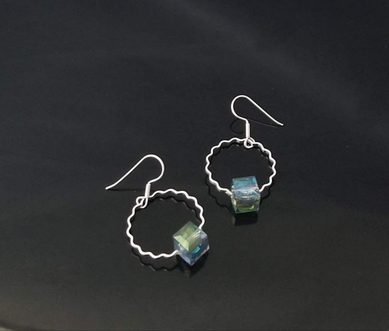Item #805505-1.5 inch Ziggy open face top rounds with Iridescent cube accents. SS hooks.
