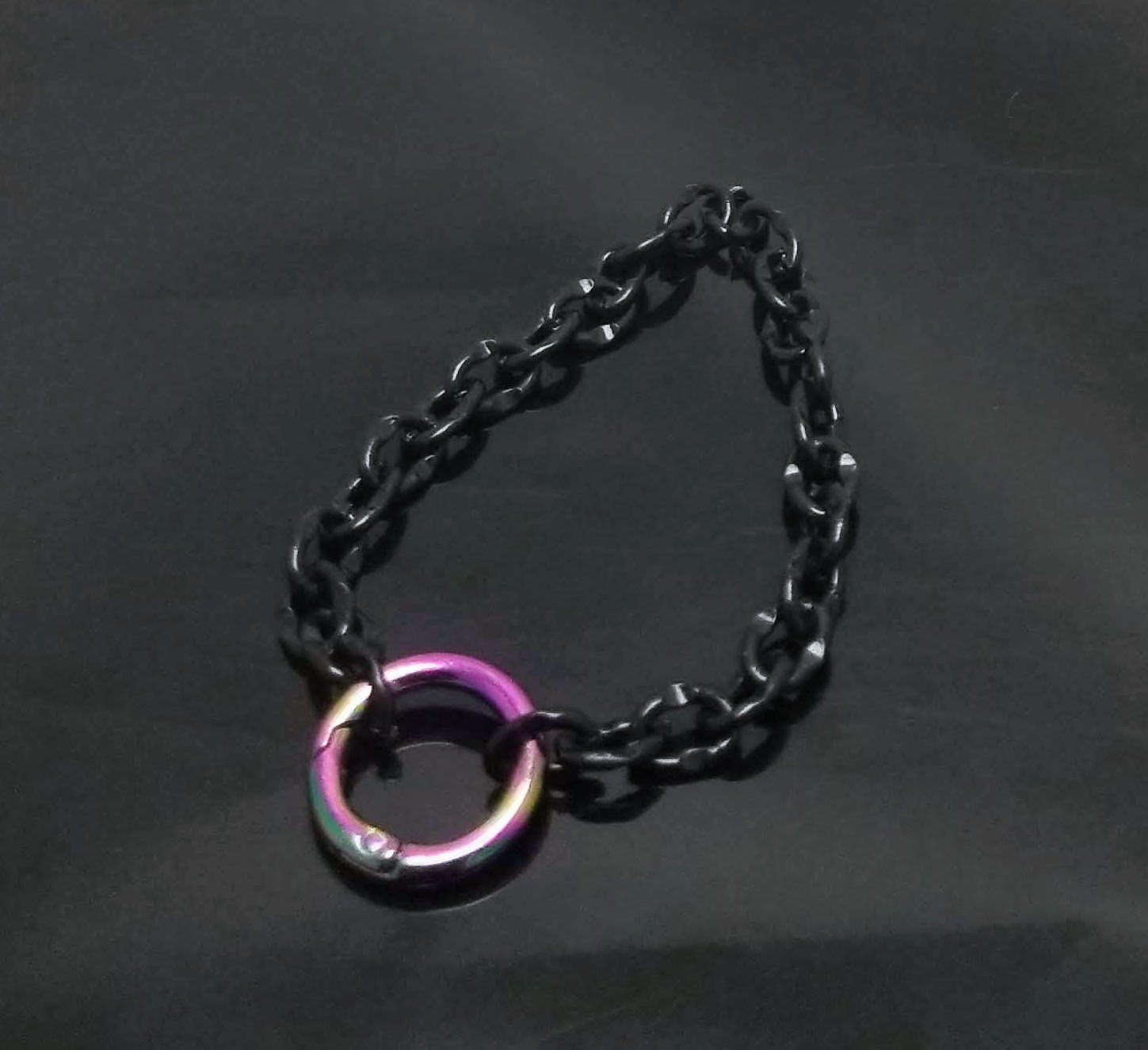 Item #806150- 9 inch Jet faceted link chain with Iridescent jumbo clasp.