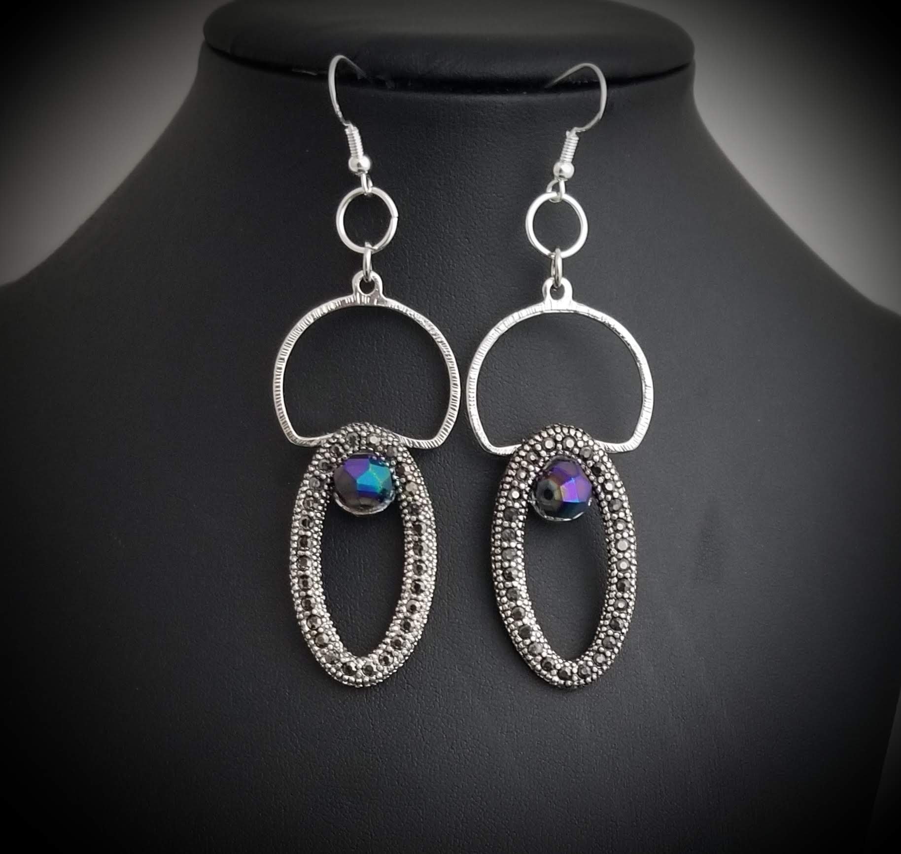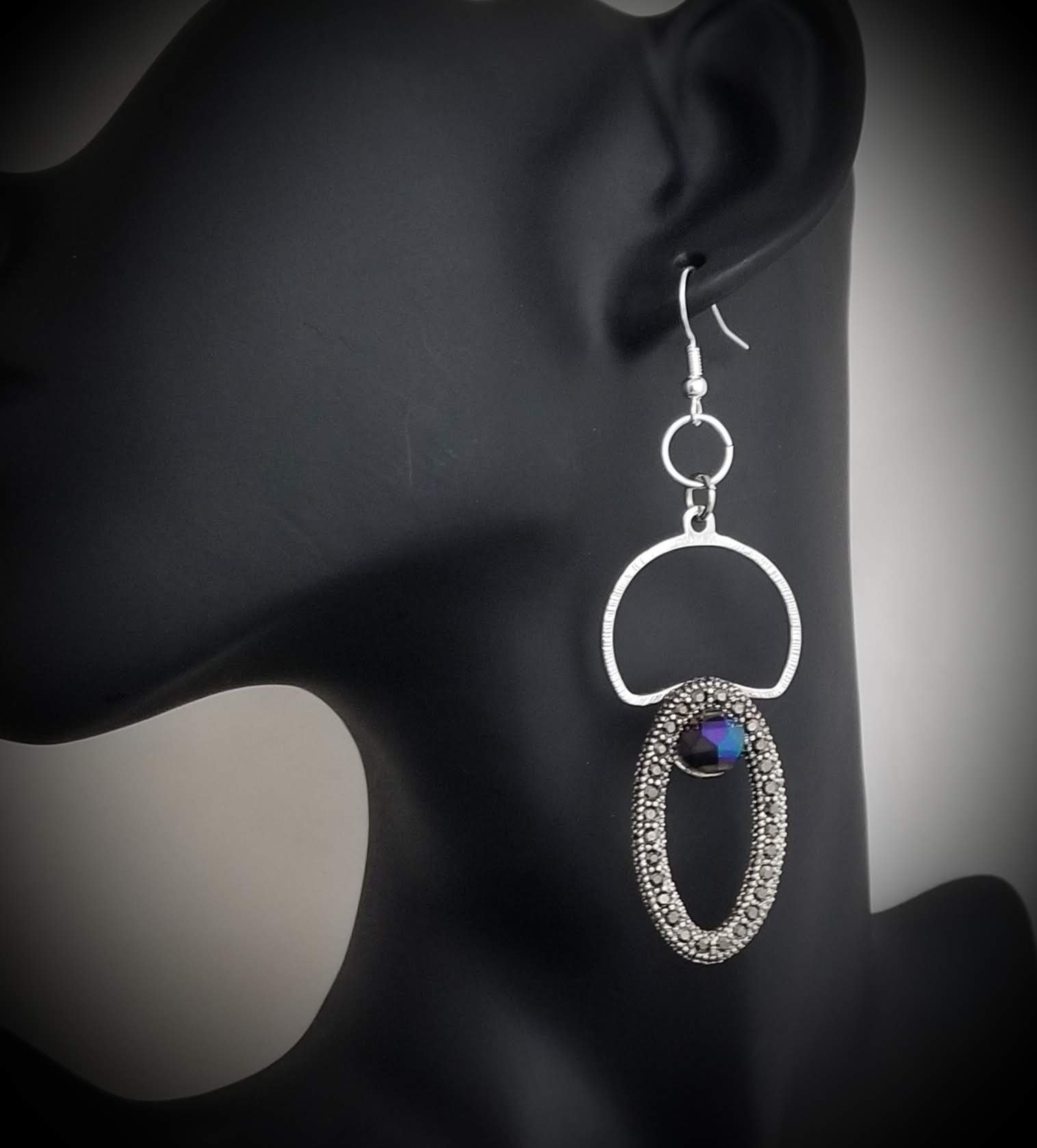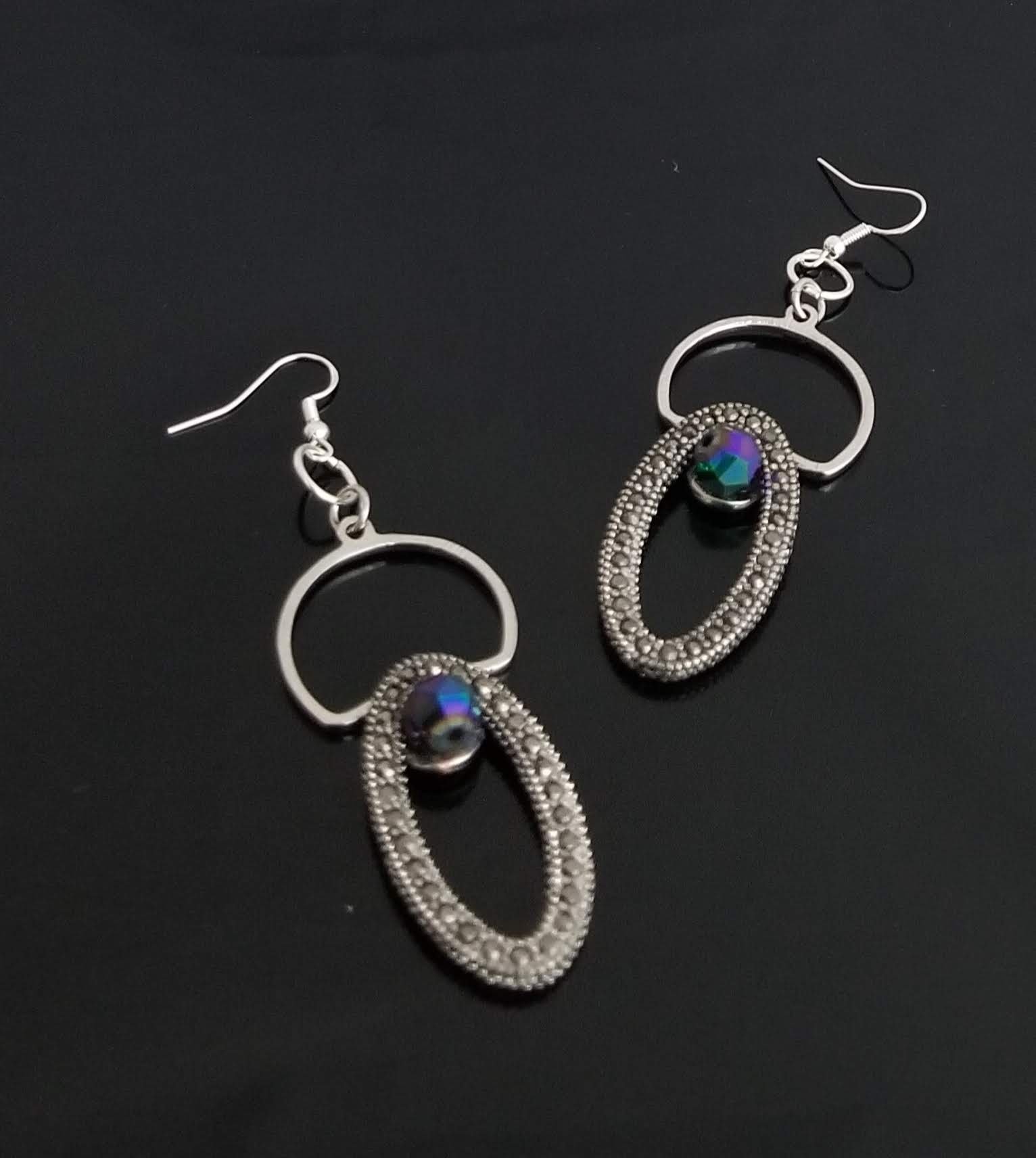 Item #801412- 3 in. Silver metal Rhinestone accent with Iridescent Rondelles. Sterling Silver hooks.