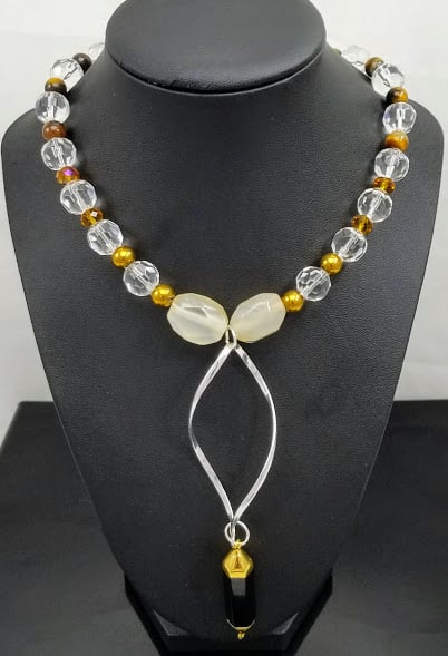 Item# 711140- 16 inch, Faceted glass, Multi Mix bead accents with Quartz front.