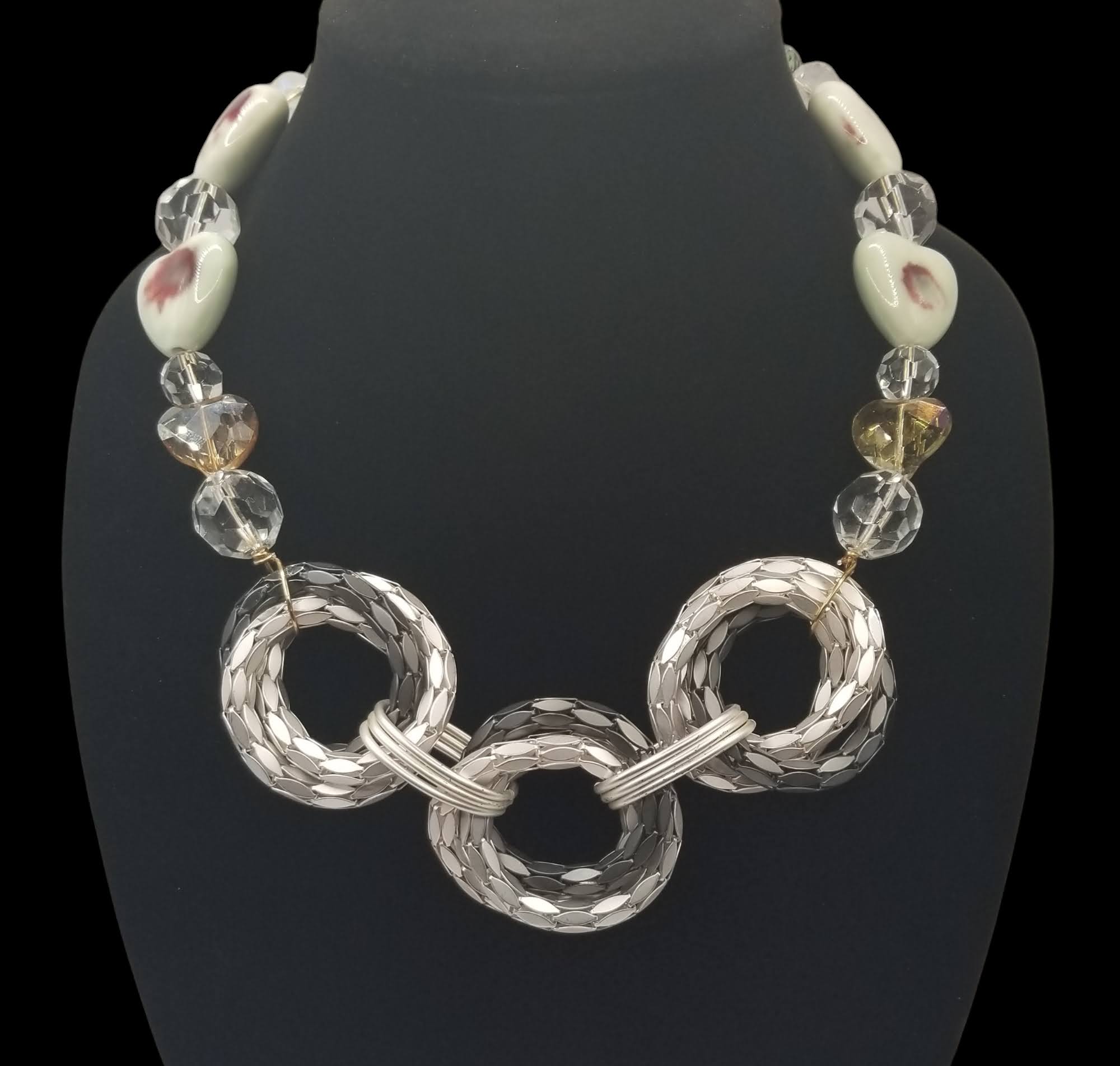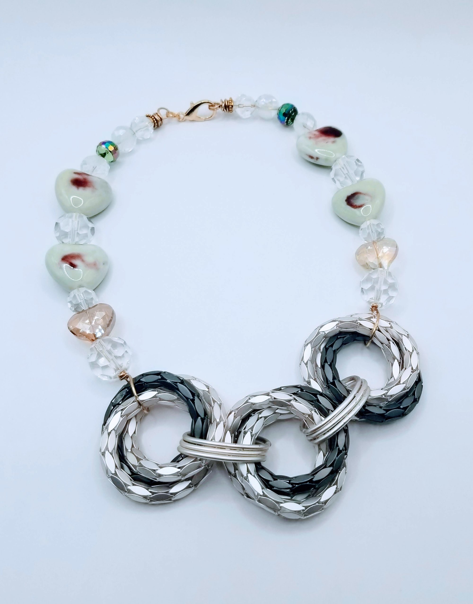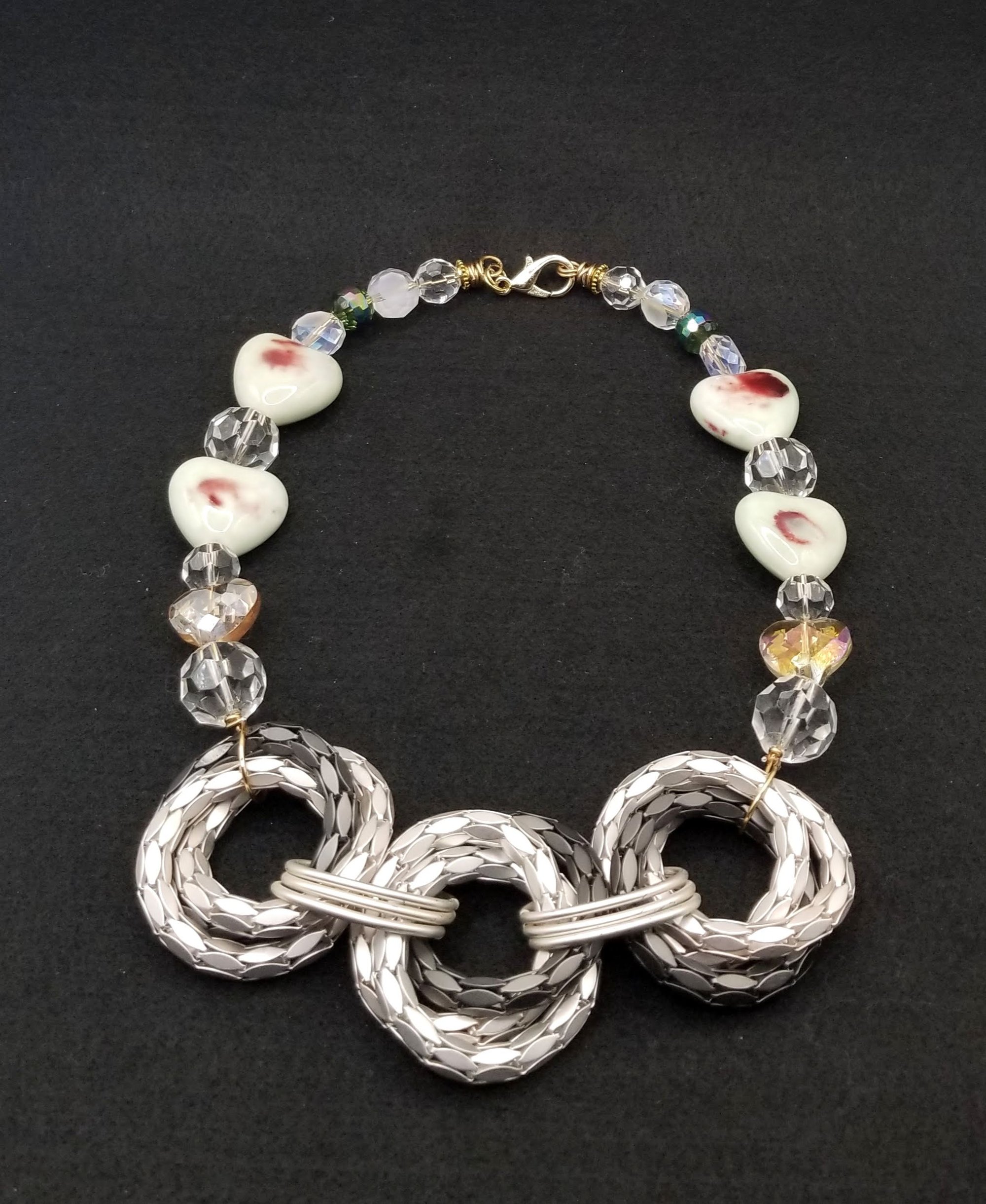 Item #901512 - 21 inch - Faceted glass paired with ceramic deco hearts. Gold wire with front two tone connect.