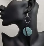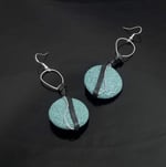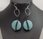 Item# 711308-3 inch-Hand twist silver wire, ceramic crater flats, leather wrap accent. Sterling Silver hooks