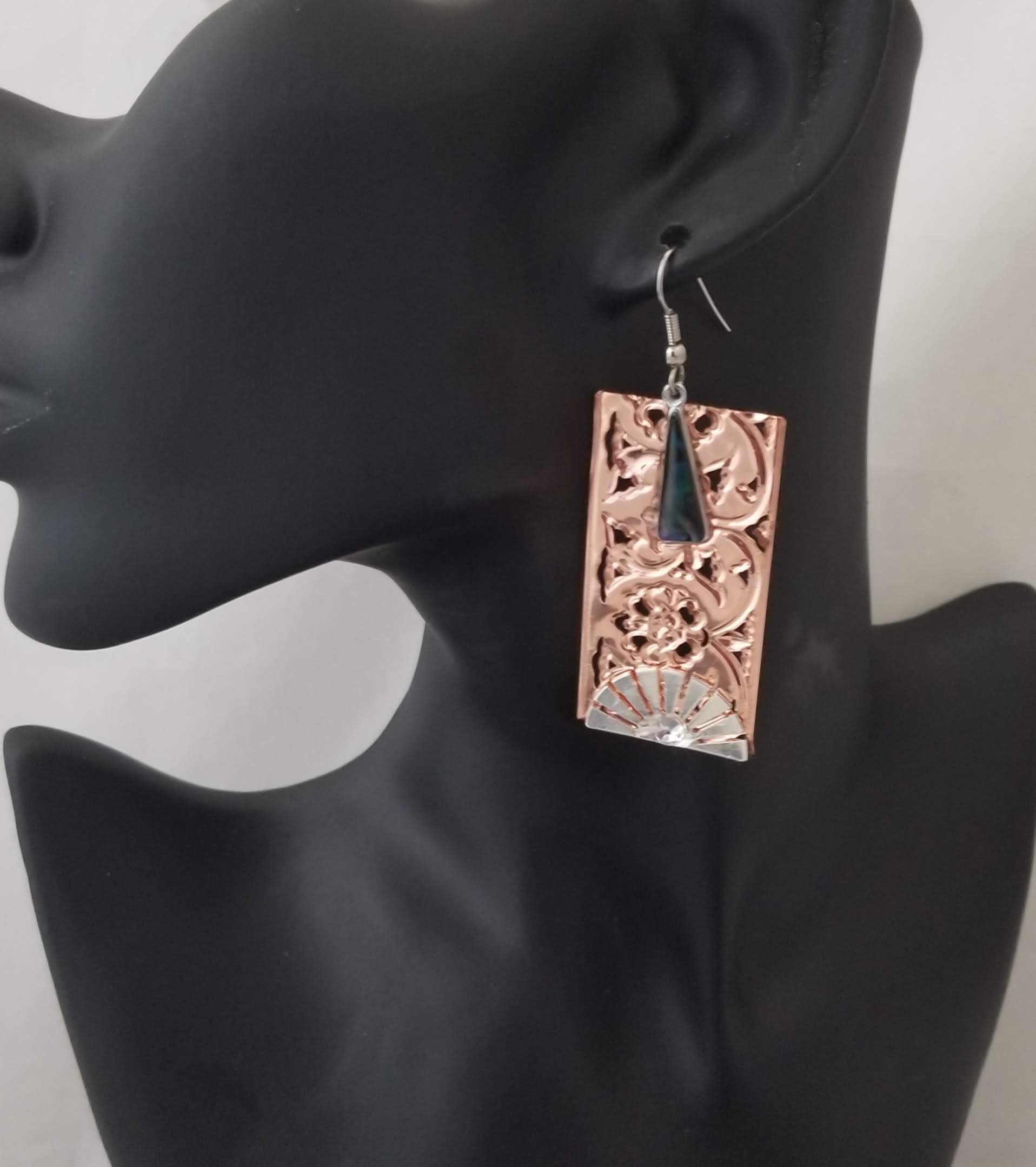 Item #806778-2.5 in Cut metal flats with deco element accents. Sterling Silver hooks.