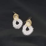 Item# 803017- 2 in Gold metal rhinestone, crochet mesh accent drops. Silver hooks
