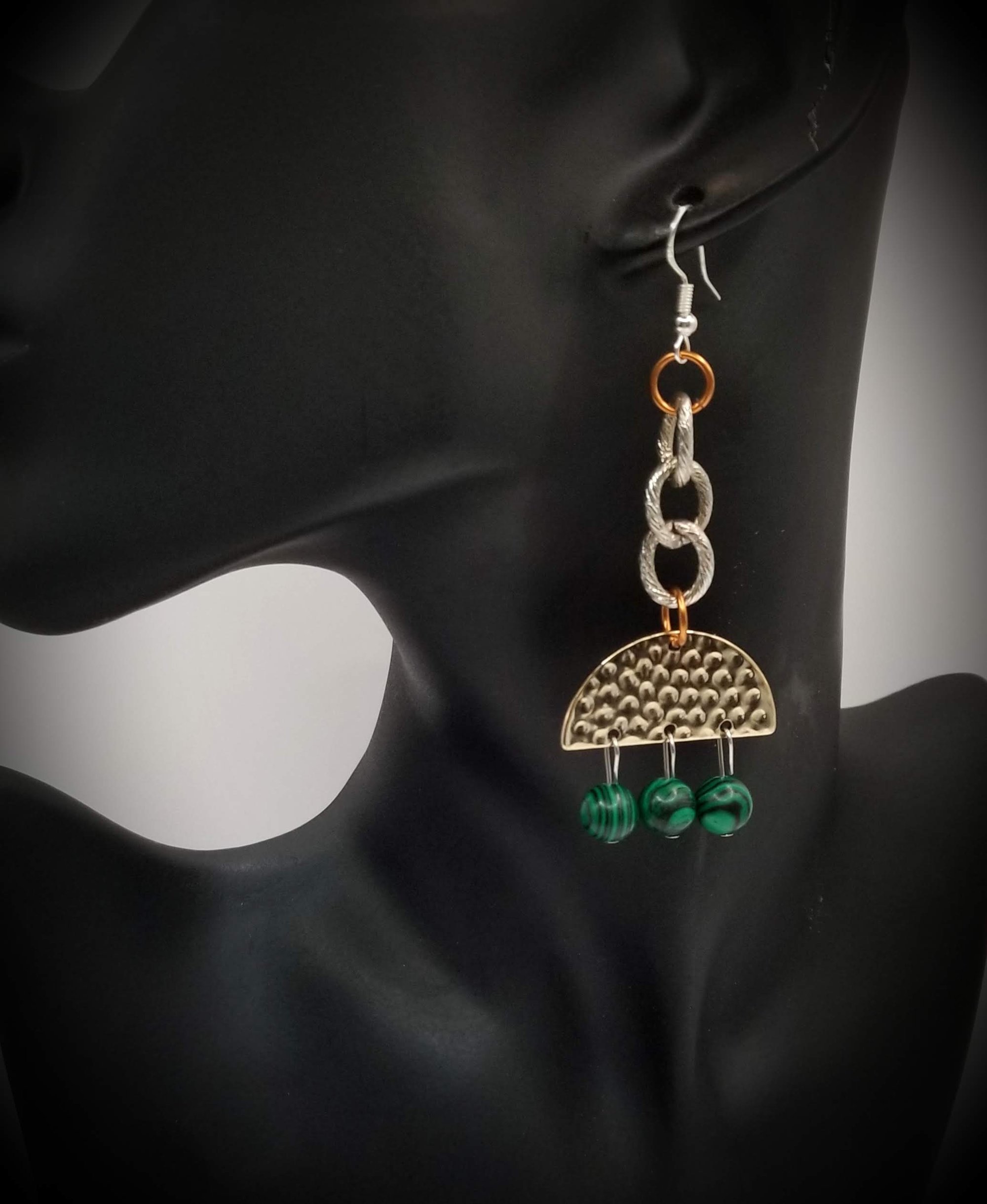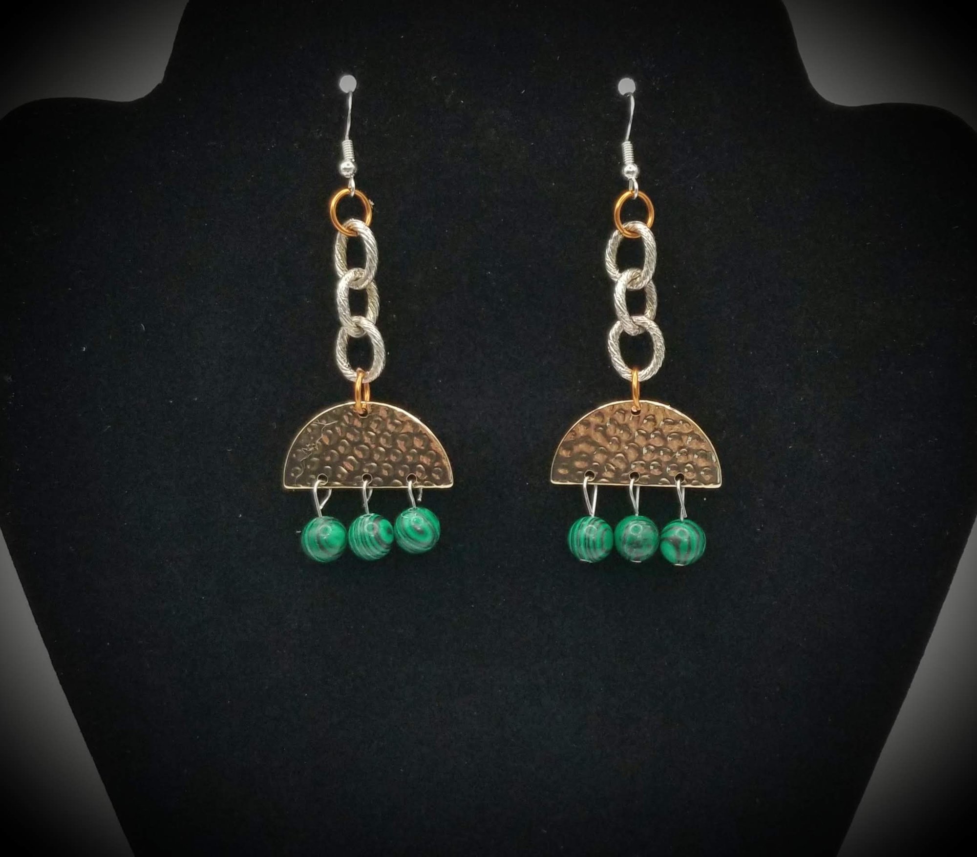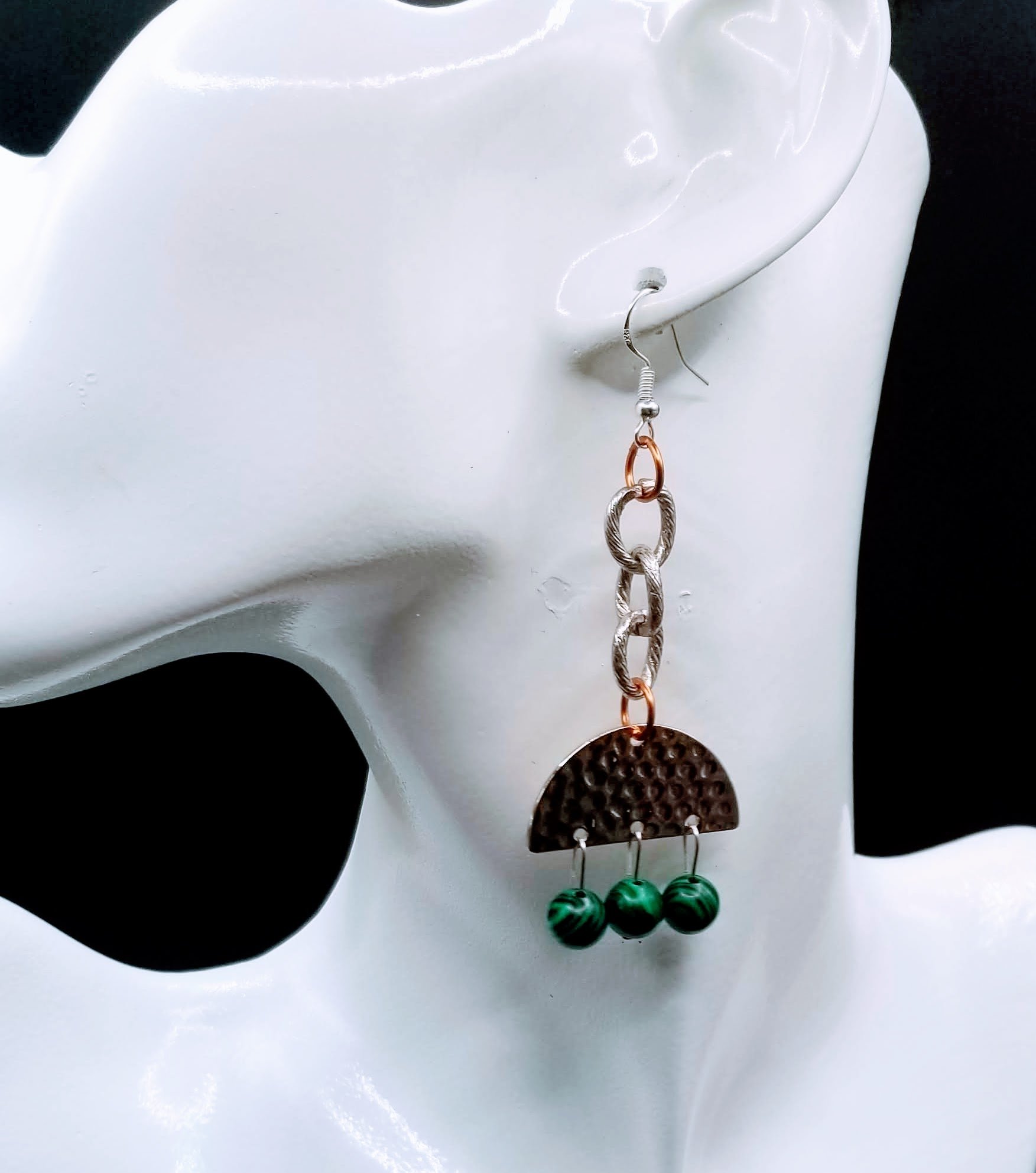 Item # 901135 - 3 inch - Two tone mix metal with dangle twirl bead accent drops. Sterling silver hooks